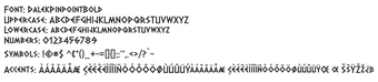 Dalek Pinpoint est une police d'affichage captivante, conçue pour les utilisateurs de Windows, qui combine des angles géométriques aigus avec une structure légèrement condensée. Cette police se distingue par ses bords pointus et ses proportions soigneusement équilibrées, créant une esthétique futuriste teintée d'un mystère presque science-fictionnel. Elle propose plusieurs variations, allant des poids gras solides aux versions en contours et texturées, offrant ainsi une profondeur et une personnalité uniques à chaque utilisation.